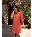 Luxus Lise Charmel Voyage D'Ete Tunika in Uni-Orange. Baumwolle-Seide, V-Ausschnitt, 3/4 Ärmel, knielang. Elegante Strand- & Resortwear. <LESEN SIE MEHR>..
