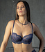Indigo blue balconette bra with refined lace. Elegant fit with open neckline and adjustable straps.