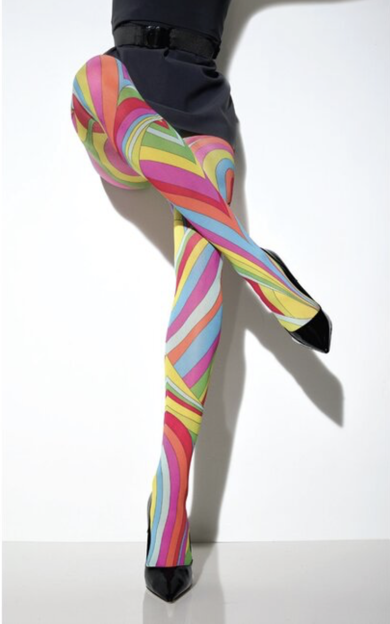 Opaque microfiber tights with retro swirl pattern. Vibrant a..