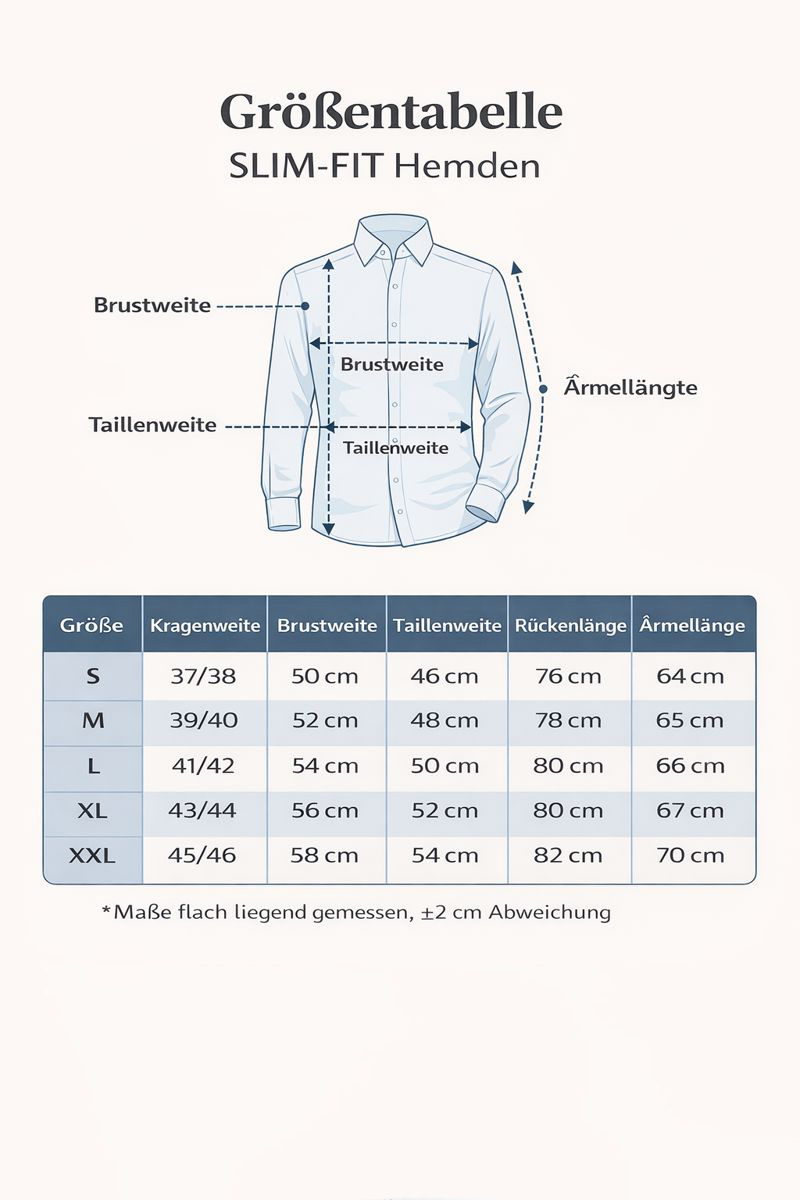 Size chart SLIM-FIT shirt: