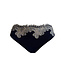 Blauwe string AMBRA Titanium! Voor:Italiaans hand borduurwerk langs de bovenrand. Achter: de billen zijn niet bedekt. Shop online bij Italian Design!