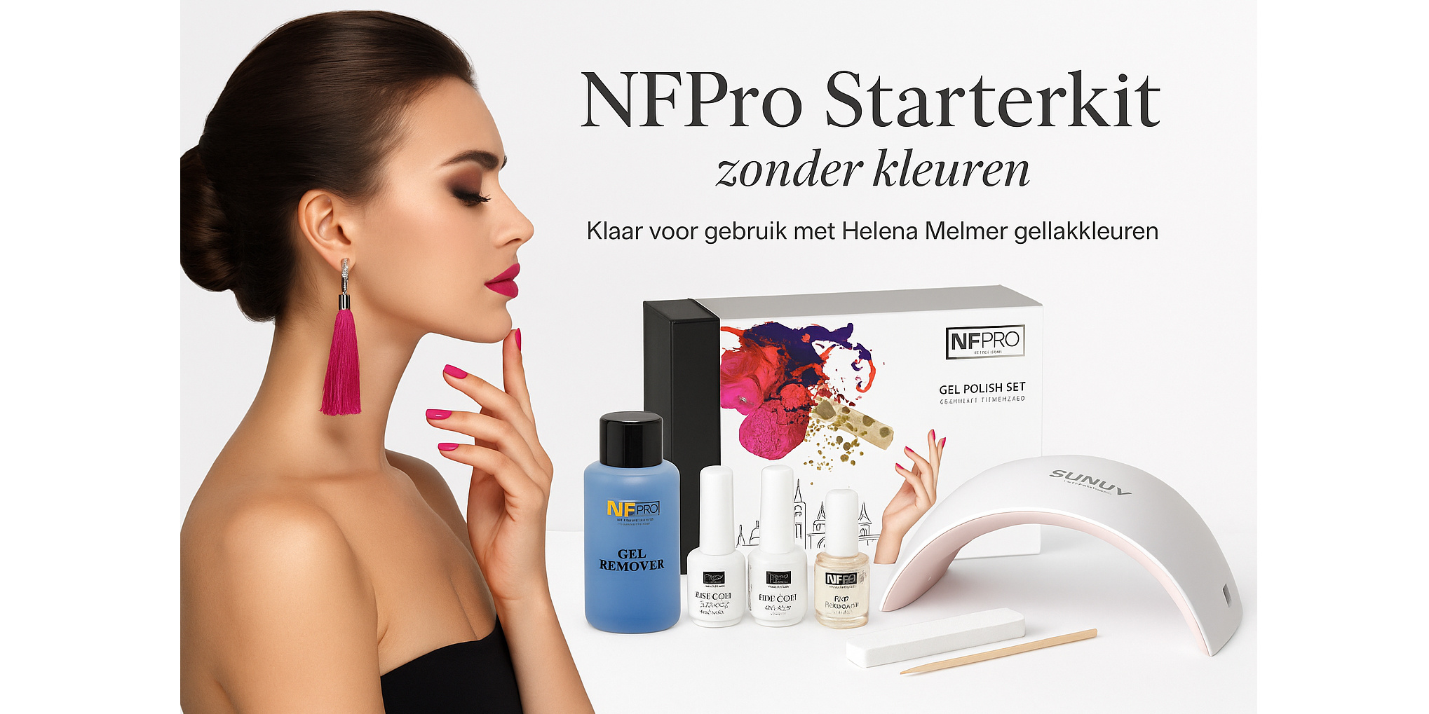 Complete NFPro Starter Kit met nagelproducten en LED-lamp van topkwaliteit. Combineer met 78 gel polish kleuren van Helena Melmer - Wereldkampioen nagelstyliste